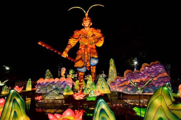 The village's cultural park was set aglow with intricate designs showcasing Jinhua's unique elements, such as Wuju Opera masks, Bayong Tower, and the poet Li Qingzhao. Among the highlights were impressive lantern scenes featuring White Snake, Sun Wukong, and peacocks.